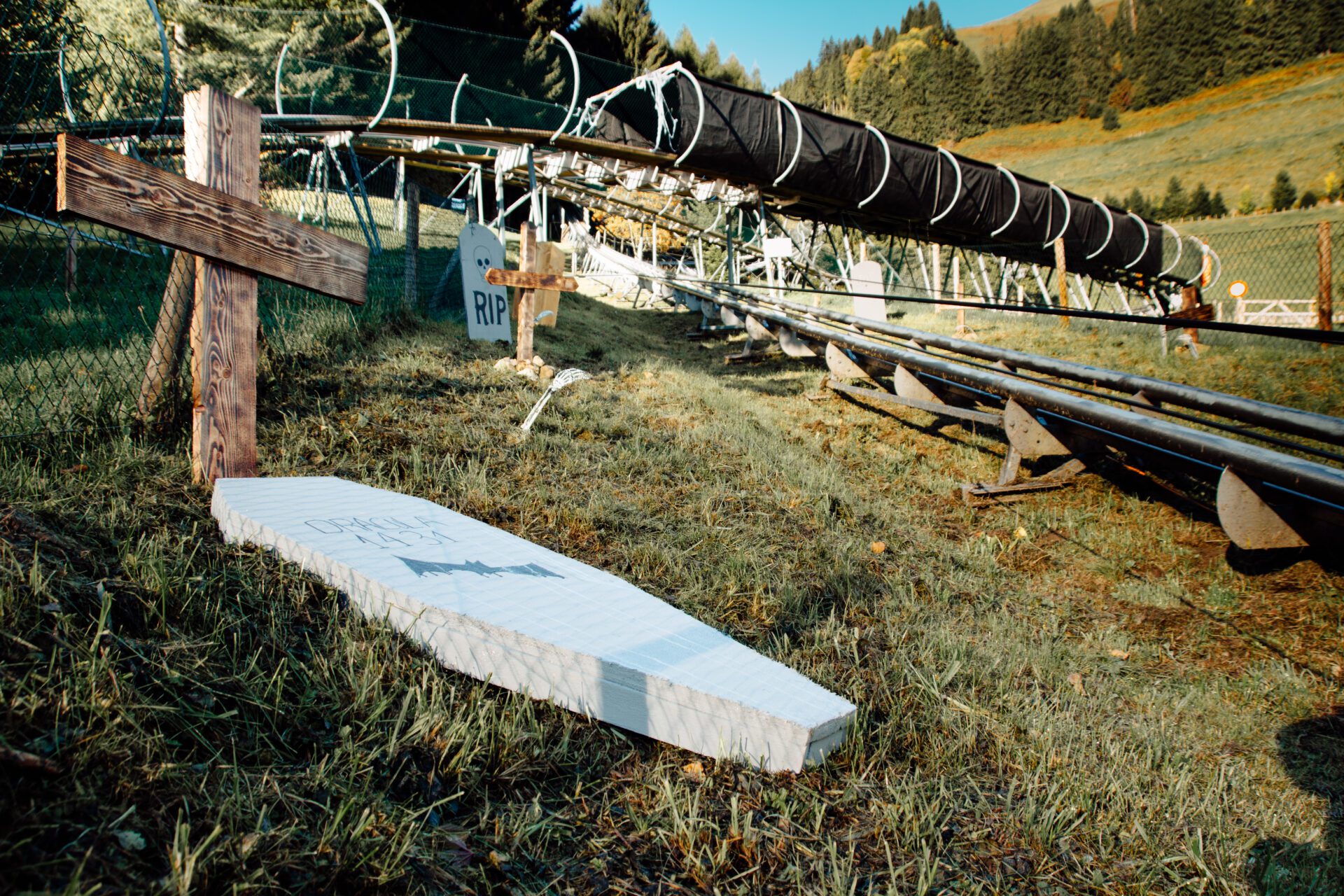 Moléson dons its Halloween attire: seasonal decorations at the funicular railway and summer sledge, a magical atmosphere and thrills guaranteed!