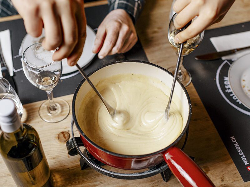 Après une belle montée, à pied ou en raquettes si le temps le permet, détendez-vous au chalet avec une délicieuse fondue !